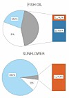 They add that feeds containing mostly SFA and MUFA do not distort fish tissues to the same extent as those containing mostly C18 PUFA such as linoleic and linolenic acid. Sunflower oil is low in C18 PUFA.