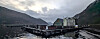 Transporting the FishGlobes from Bluegreen’s construction yard to the launch site on the Frierfjord was a complex operation, even though it covered a distance mof just a few hundred metres. Each unit was moved by hydraulic trolley systems across Frier Vest, where thew port authority is building a new “smary quay”, and out to the quay where a crane with an 800-tonne lifting capacity was anchored.