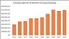 The value of farmed salmon imported into Canada has more than doubled during a 10-year period in which production in British Columbia has fallen by 40%, the BC Salmon Farmers Association has revealed.