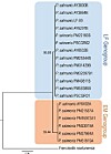 The phylogenetic tree constructed by the researchers with seven conserved genes corroborated the existence of two different genogroups composed of six strains in the group "EM" or "A" and 13 in the group "LF" or "B".