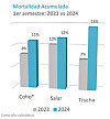 In the case of rainbow trout, accumulated mortality in the first six months of this year doubled to 14.3% (H1 23: 7%), and the 2023 coho salmon season - which overlapped into 2024 - ended with an accumulated mortality of 8.2%, around a fifth higher than the previous season.