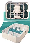 The concept is based on modules, consisting of four octagonal tanks centered around a shared water treatment unit. The patented structure secures short pipelines and the system has been designed to prevent the accumulation of sediments.