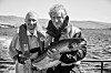 It's all there in black and white: YO! executive chef Mike Lewis, left, and chief executive Robin Rowland get to grips with a farmed salmon. Photo: YO!