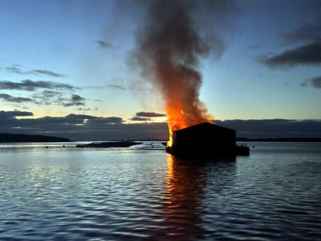 A large shed on top of the concrete hull of the barge, which was at Cooke’s West Fara farm, Orkney, was destroyed in the blaze.