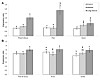 Figure 4. Expression of virus-responsive genes in tissues of exercised and swim performance groups post IPN challenge. Improved survival after IPN challenge was associated with the expression of virus responsive genes (VRGs) as assessed by qPCR. Higher expression levels of VRGs in cardiac tissue of poor compared to good swimmers from the Lint regime (A), and in head kidney of poor compared to good swimmers from the control group (B) reflected the overall higher mortality of poor swimmers in comparison to the good swimmers. Further, VRGs expression in both tissues was in concordance with differences in survival between interval (Lint) and constant speed (Control and Medium) training regimes. Bars represent expression ratio ± SEM relative to a pooled control sample and normalized against two reference genes (18S rRNA and elongation factor 1α) with correction for PCR efficiency. For A and B, each bar is a composed index of 6 (n = 8 fish/swim-performance/regime) and 8 (n = 5 fish/swim-performance/regime) VRGs, respectively. Genes included: RSAD2 (radical S-adenosyl methionine domain containing protein2) (A + B), IFIT5 (interferon-induced protein with tetratricopeptide repeats 5) (A + B), STAT1 (signal transducer and activator of transcription 1) (A + B), VHSV2 (viral haemorrhagic septicaemia virus-inducible protein) (A + B), BAF (barrier-to-autointegration factor) (A + B), GIG1 (interferon-inducible Gig1) (A + B), RIG-I (DEAD/H (Asp-Glu-Ala-Asp/His) box polypeptide) (B), MDA5 (interferon induced with helicase C domain 1) (B). abc: Denotes significant difference (p < 0.05; paired t-test) between training regimes. Other symbols (*§) denotes significant difference (p < 0.05; paired t-test) between poor and good swimmers within each training regime. We further analyzed expression of eight VRGs in head kidney, where IPNV replication was observed. Expression levels within exercised good swimmers showed a similar trend as observed for heart tissue (Figure 4B). Within poor swimmers, VRG expression levels were significantly lower in M compared to both control and Lint trained fish (p < 0.05). In contrast to heart tissue, VRG expression levels in head-kidney of control trained good swimmers were significantly lower compared to control trained poor swimmers (p = 0.03). Thus, the increased overall mortality observed for poor swimmers was reflected by stronger expression levels of antiviral immune genes in Lint trained (heart) and control trained (head-kidney) fish as compared to good swimmers. While no evidence for any positive effects of exercise training on mortality and infection status was observed for good swimmers, results implied beneficial effects in terms of reduced infection status (lower VRG expression) from M trained poor swimmers. Results produced for 8 genes by microarray and qPCR were in close concordance (Pearson r = 0.92; p = 0.001).