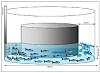 Methods Experimental fish Juvenile Atlantic salmon belonging to the Salmobreed strain were produced and reared at Nofima AS, Sunndalsøra, Norway. Freshwater stage procedures took place at the same research station, which is an approved facility under the Norwegian Animal Research Authority (NARA). Stunning and sampling of fish was done in agreement with the Norwegian regulations. As fish were exposed to different sustainable water velocities that did not induce any obvious stressful state, no specific NARA approval was required according to Dr. G. Baeverfjord, member of the NARA board and local NARA officer at Nofima AS. Swimming performance screening and training experimental setup A total of 1355 fish were individually tagged (Passive Integrated Transponder (PIT), Glass tag Unique 2.12 × 12 mm, Jojo Automasjon AS, Sola, Norway) and measured (mass ± S.D. = 40.7 ± 0.2 g and fork lengths = 15.0 ± 0.3 cm) before being graded according to their swimming performance. Groups of approximately 100 fish were placed in a pre-conditioned 1.5 m diameter circular tank with an inner ring to reduce the swimming area to a 40 cm radius (Figure 5). The water inlet to the swimming area was tangentially situated on the side of the outer tank so that it generated the maximum water velocity. The inner ring was placed on four pieces of PVC (1 cm high) that allowed the water to drain freely to the center of the tank, while preventing the fish from leaving the swimming area. Maximum water inflow generated water velocities of 42–20 cm s-1 nearest the center, 73–58 cm s-1 in the middle of the stream and 97–81 cm s-1 furthest from the center. A grid (painted metal meshing) was secured downstream of the water inlet to prevent fish from drifting backwards, and a floodlight placed above the grid encouraged fish to remain upstream. Water velocity and height (10–15 cm) were controlled by adjusting the water supply valve and the position of the draining stand pipe. After being introduced into the swimming flume, fish were left undisturbed for 15 min at the lowest speed to acclimatize. Water speed was then increased graduall y every 1–2 min until half of a fish group had been removed from the tank. Fish that were unable to swim against the increasing water current typically laid against the back-mesh grid. They were removed with a dip-net, identified (PIT tag reading) and placed back in their rearing tank. During the trial, fish were regularly and gently repositioned to ensure that they would all be exposed to testing conditions and would not evade from the high speed outer portion of the swimming ring. Based on their swimming performance, fish were then allocated to one of two groups. The first 50% that stopped swimming were categorized as “poor swimmers”, and the last 50% still swimming were the “good swimmers”. Both poor and good swimmers were randomly mixed among 16 cylindro-conical experimental tanks (500 l, 82 cm in diameter, 77–86 fish tank-1) and left undisturbed for one week before the start of the training regimes. The center of each experimental tank was fitted with a plastic pipe (31.5 cm diameter), which reduced the area in the tank with lowest water speed. A frequency-controlled pump (Hanning Elektro Werke, PS 18–300; Oerlinghausen, Germany) directed the water current and a wire mesh fence, attached between the pipe and the edge of the tank, prevented the fish from drifting backwards. The water speeds were calibrated by using the average speed measured at twelve points in the tank (four horizontal locations and three depths at each location (Höntzsch HFA propeller, Waiblingen, Germany with HLOG software)). Five different sustained exercise-training regimes were tested; the control regime in quadruplicate tanks and the other regimes in triplicate tanks. Three of the training regimes were continuous velocity: the control (C; 5.7 cm s-1), medium intensity (M; 11.5 cm s-1) and high intensity (H; 23 cm s-1) regimes. At start of the 10-week training experiment, these speeds were equivalent to 0.38, 0.77 and 1.53 BLs-1 for C, M and H, respectively. As fish grew during the trial, average relative water speeds were reduced to 0.32 (C), 0.65 (M) and 1.31 (H) BLs-1. The two remaining training regimes used interval training, with daily increments in the relative water velocity from 0.32 to 1.31 BLs-1 for either a single 8 h period (Long interval; Lint) or four 2-h periods for a total high speed training period of 8 h (short interval; Sint). Theoretically, both interval groups swam the same distance as the M group. The 10 weeks of training were followed by a one-week recovery at control speed prior transferring the fish to seawater. To stimulate smoltification during the experiment, fish were exposed to a short daylight regime (12–12 Light–dark) for the first six weeks, followed by continuous light for the remaining five weeks. Measurement of ATPase in gills (n = 10) sampled from each group was conducted in a commercial laboratory, Havbruksinstituttet AS, Bergen, Norway, and confirmed that all fish were sampled within the smolt-window (data not shown). Water temperature was measured daily (10.5 ± 0.8°C) while oxygen saturation was measured weekly and was maintained over 85% with oxygen supplementation. Dead fish were removed with daily inspections and weighed. Figure 5. Swimming performance screening test. Groups of approx. 100 fish were placed in the screening tank each time and allowed to acclimate for 15 minutes at minimum water speed before start of the water speed increments. A plastic mesh (left side) prevented fish from drifting backwards. Inner ring was lifted one centimetre with the help of PVC pieces (not on diagram) to allow water drainage into the centre of the tank where the main outflow was located. Blue arrows indicate direction of water flow (clockwise).