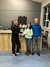 Loch Erisort farm manager David Macmillan, left, presents a donation for the Creagan Cafe to operator Angela Macdonald and Iain Macdonald, treasurer of the North Lochs Community Association (NLCA). The recently-opened cafe, situated in the community hall, doubles as a warm place for anyone struggling with heating and feeding themselves over the winter, and was nominated by Mowi area manager Don MacLeod, who was unable to attend the presentation.Photo: Iain Ferguson, The Write Image