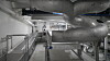 The stunned fish are channelled though a broad pipe to an inspection conveyer on the next level down, where they bleed out for 30 seconds before being transferred to the wells and stored in refrigerated sea water. Any fish which were not adequately stunned are manually guided into a back-up stun-and-bleed unit at the end of the conveyor.