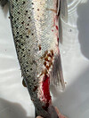 A total of 41 sea trout and eight salmon smolts were registered. Most of the sea trout were clearly damaged by salmon lice with grazed dorsal fins and wounds. The sea trout had an average of 74 lice per fish. The lowest number of lice observed per sea trout was 10 lice and the most was 237 lice.