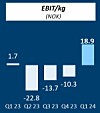 Operational EBIT per kg in Norway was NOK 34.1.