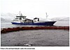 For the second study, the well-boat Romaster had two wells: one filled with freshwater (0.28 ppt) and one filled with seawater (33.7 ppt. Approximately half the biomass in the cage (22000 Atlantic salmon with a mean weight of 5.06 kg) (110.4 T) were used in the study. The fish were pumped into the freshwater well from a 90m polar circle onto the well-boat (Picture 2). As the fish were pumped into the well, excess seawater was removed via a grid to ensure that the salinity of the freshwater was maintained during the study period. The remaining fish were pumped into the well containing seawater for delousing with hydrogen peroxide. The time required to transfer the fish into the well was recorded and transfer from first to last fish in took one hour and forty minutes. Efficacy of treatment was assessed by undertaking a lice count 35 minutes after transfer thus all fish were exposed to freshwater for between 35 minutes and 2 hours 15 minutes. For both studies, a lice count was performed on 30 fish which were netted directly from the well after each treatment.
